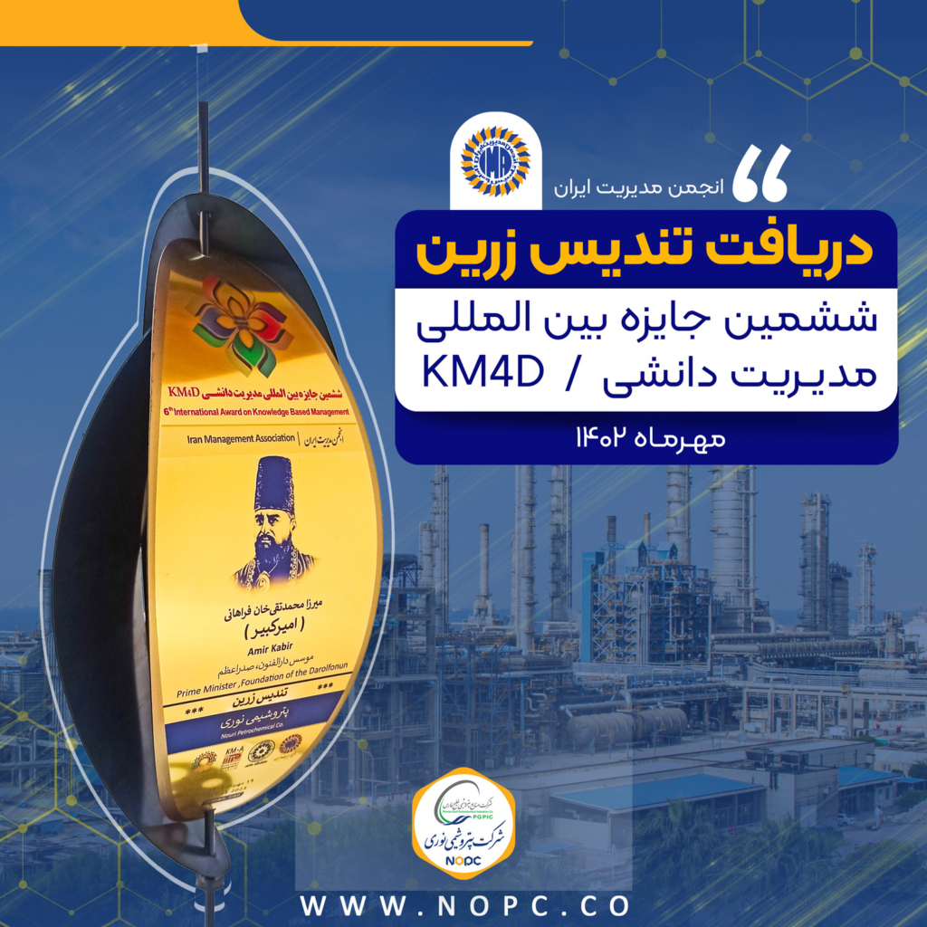 اهدای تندیس زرین جایزه مدیریت دانشی KM4D به پتروشیمی نوری برای سومین سال پیاپی
