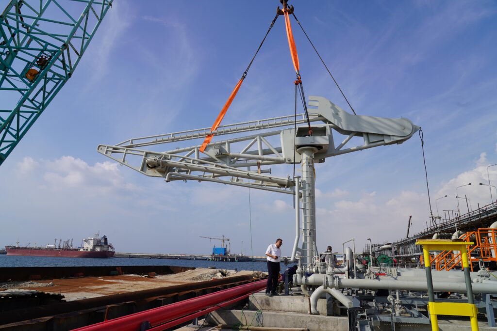 به گزارش خبرگزاری سیمای پتروشیمی به نقل از روابط‌عمومی شرکت پایانه‌ها و مخازن پتروشیمی، این پروژه فنی و تخصصی که توسط تیم‌های مجرب واحد تعمیرات شرکت اجرا شد، پس از روزها عملیات دقیق مونتاژ، آماده‌سازی، کنترل‌های مهندسی و هماهنگی‌های عملیاتی، امروز با استقرار و نصب نهایی بازوی بارگیری در محل اسکله ۸، با موفقیت وارد مرحله راه اندازی شد.